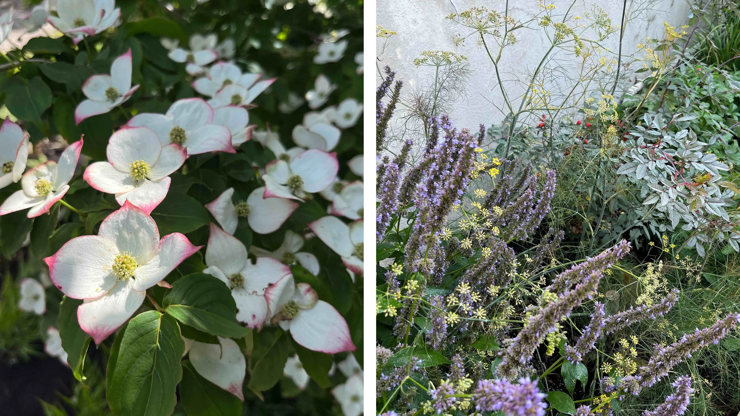 A former utilitarian passage way visible from the kitchen has become a rather special ‘fernery’ with another antique stone trough, tree ferns and lush underplanting enjoying the shady but sheltered location. Considered use of hedging creates views into and out of the garden. Oversize Taxus domes are scattered around the still generous lawn.